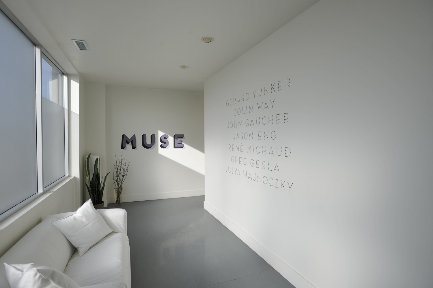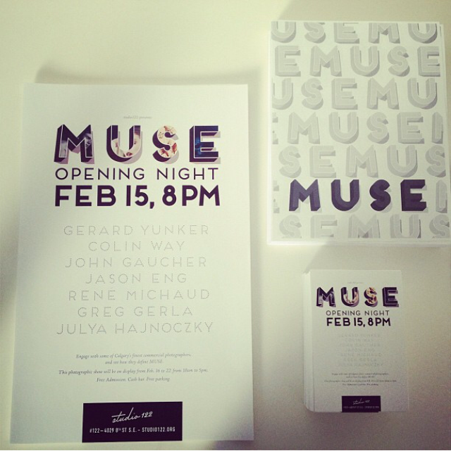 Since 2009, Studio 122 has hosted a studio collaborative of select photographers to showcase their work with an underlying theme. The interpretation of MUSE was this year's theme and concentration for the commercial photographers. The space required some front entrance decals, 2013 MUSE branding and advertising.